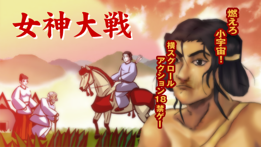 FLASH版Win版。古代神話の女神達が次々と出てくる神武天皇を描いたファンタスティック横スクロールエロゲーです